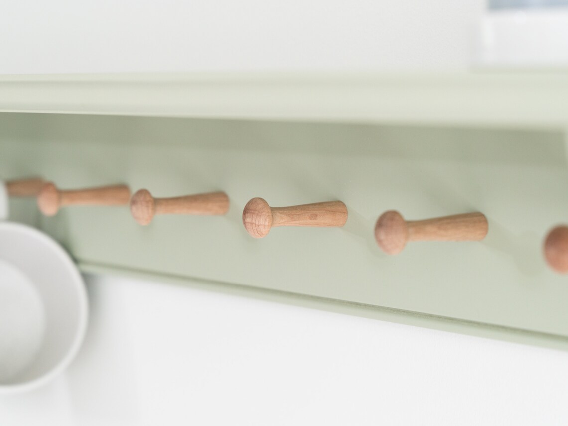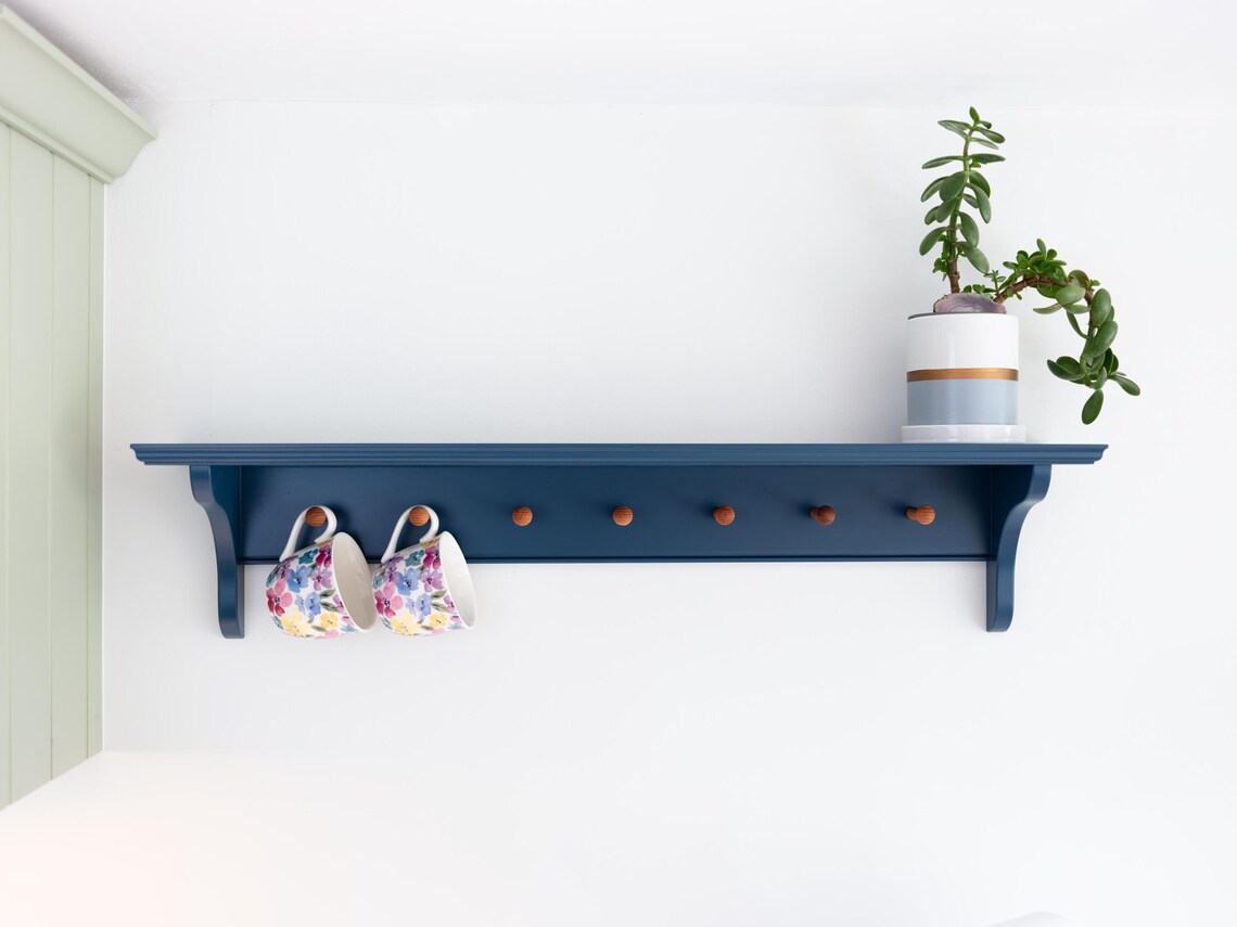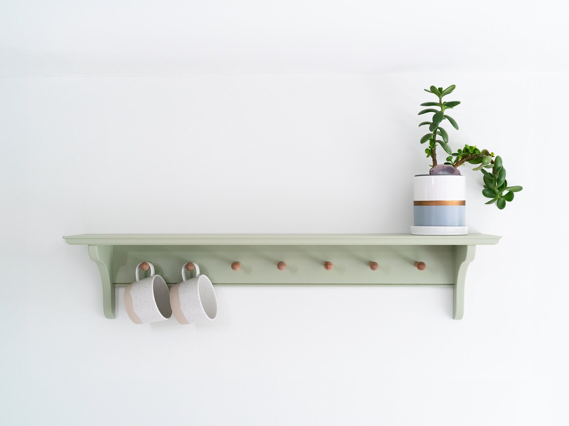 Our Shaker Peg Shelf makes a perfect Mug Rack, Pantry shelf, Hallway coat rack, Utility Key/Hat Tidy or Bedroom Shelf.